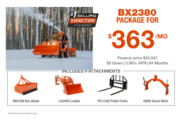 Eligible with all Kubota/ Land Pride attachments. Prices may vary. Eligible for up to $2000 in savings!